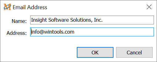 Click on the Add button to open the Email Recipient Maintenance window shown below. The two fields will be blank. Just enter the person's name and email address and click OK to add that person to the list.