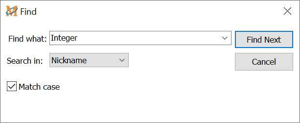 Use the Find feature to search through the list of macros in the Macro Express - Explorer window. It performs the search beginning with the macro highlighted and continues through the rest of the list. Pressing CTRL + F or clicking on Search > Find will open the Find window.