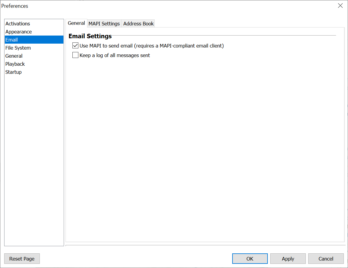 If using this option, the SMTP Settings tab changes to a MAPI Settings tab so the options can be set.