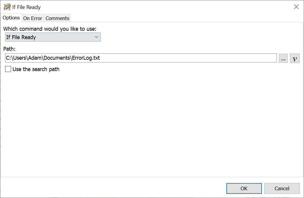 This command tests if the file selected is no longer busy and ready to accept input. During macro playback it's possible that another application is still writing to it. The If File Ready command checks to ensure the file is no longer being written to.