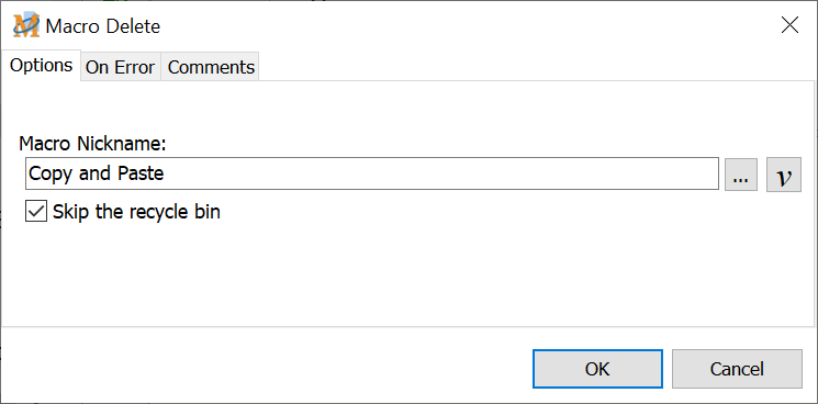 Select this option to have the deleted macro bypass the Macro Express Recycle Bin.