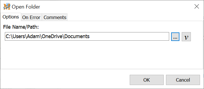The Open Folder command provides a shortcut to folders on the computer. Set up a hot key or other trigger to instantly go several layers deep in the File/Folder structure.