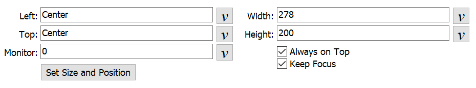 Instead of using pixels coordinates, the Pause window may appear in the center, corners or midpoints of the screen by using the Dialog Positioner. Pressing the Position Manually button activates the Dialog Positioner and Dialog Sizer windows.