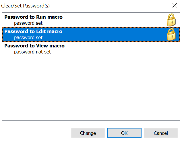Macro Express Explorer > Category > Set/Clear Password(s)