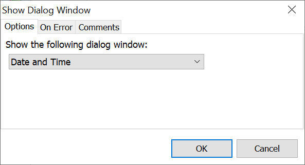 This command allows for a quick method to activate several standard Windows dialog boxes. The functions are detailed below.