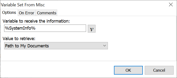The Variable Set from Miscellaneous command is used to retrieve a variety of information about the computer, the macro file, or Macro Express.