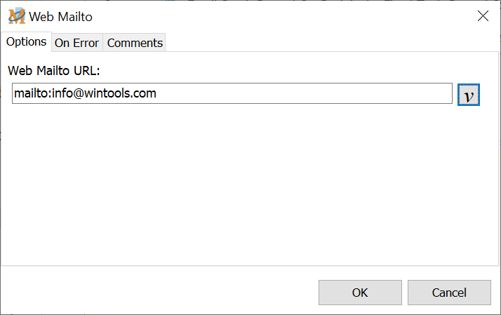 This action is similar to clicking on a web page link to send an email to the web host. The action opens the email client and inserts the email address in the To: field. Most email programs support this function, though not all.
