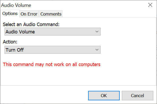 Some Audio commands may not be supported on certain computers or versions of Windows. If your computer does not support a specific command, the message 'This command is not supported on your computer.' will be displayed.