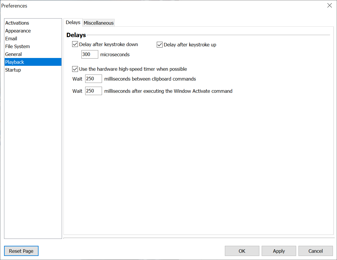 Macro Express Explorer > Options > Preferences > Playback > Delays