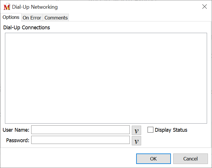 The Dial-Up Networking option displays a list of all the phone book entries created in Windows. If none are displayed, a phone book entry will first need to be created in Windows. Choose the entry to dial and connect.