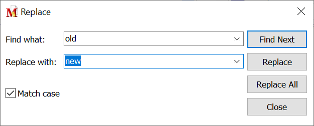 Use this feature to quickly replace a word found in the macro with another. Click on Edit > Replace or Ctrl R to activate the Replace window as shown below.