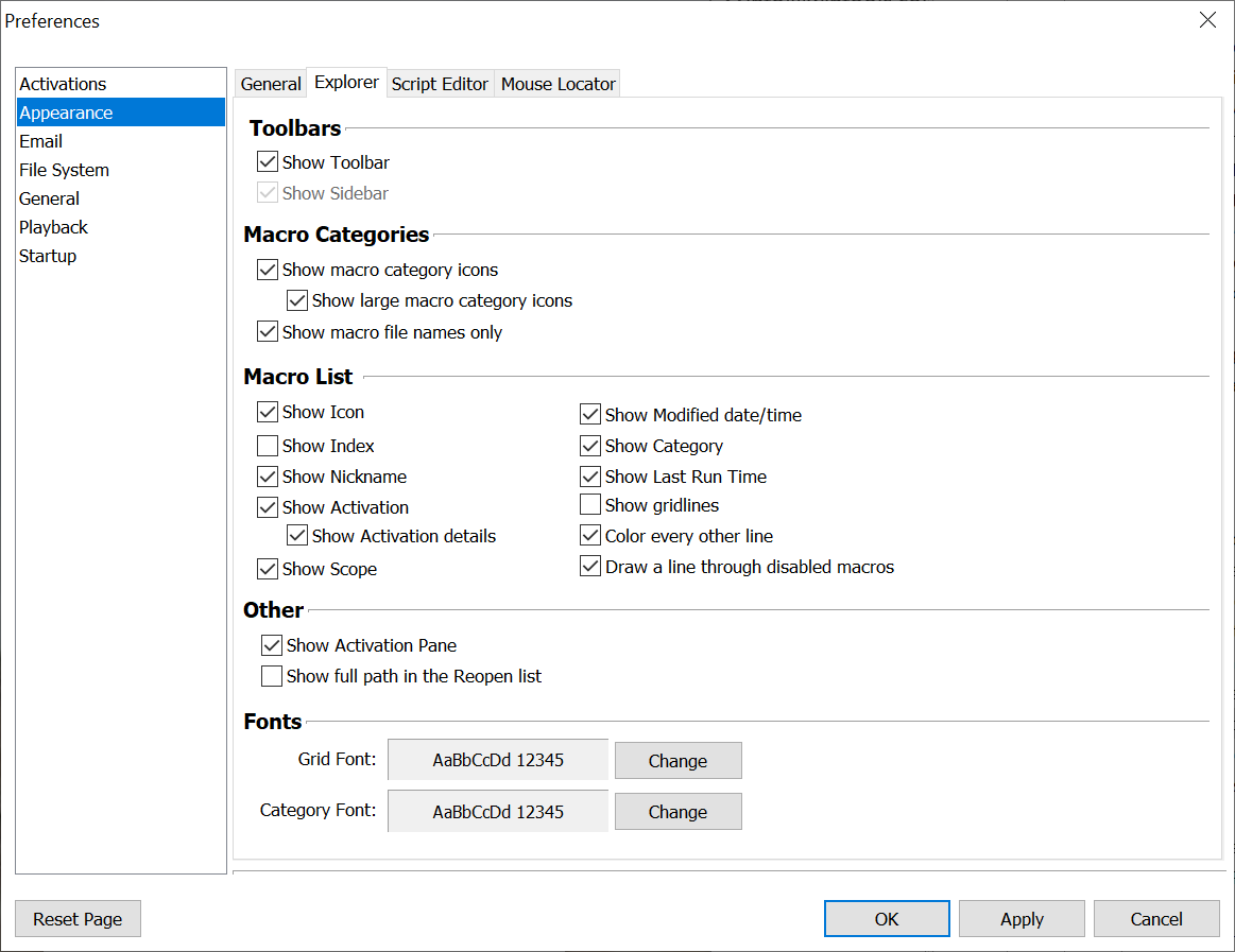 Macro Express Explorer > Options > Preferences > Appearance > Explorer Tab