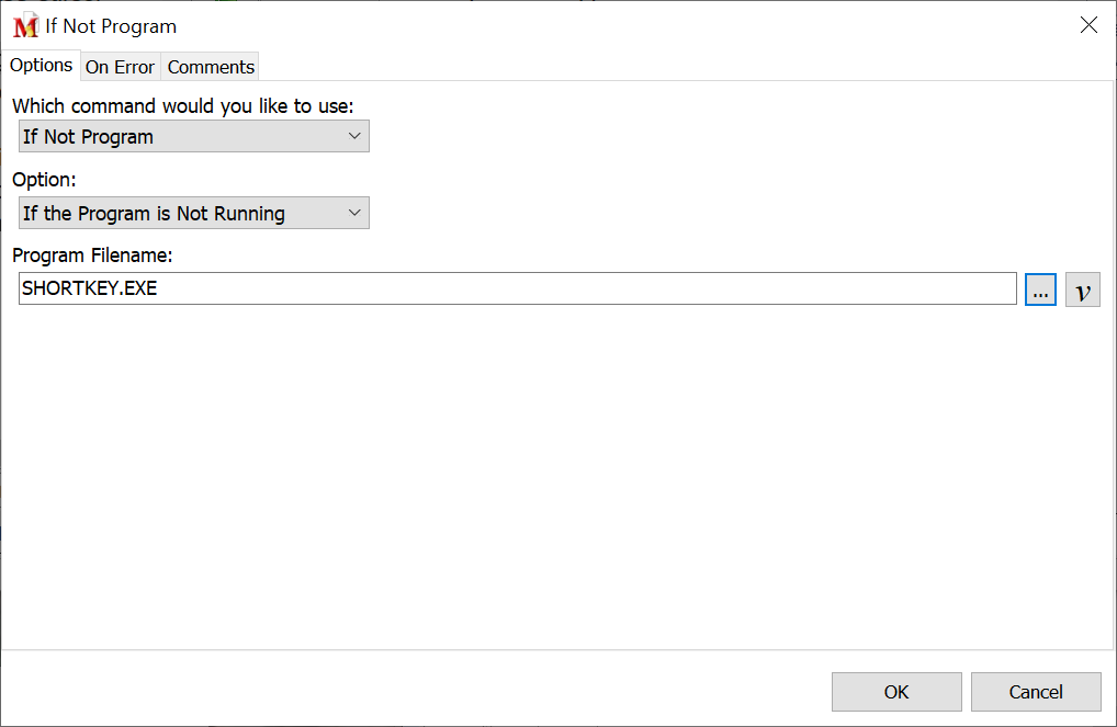 This command is similar to the If Not Window command. It checks if the specified program is not on top (does not have focus) or if the program is not running.
