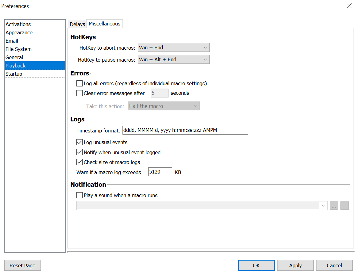 Macro Express Explorer > Options > Preferences > Playback > Miscellaneous