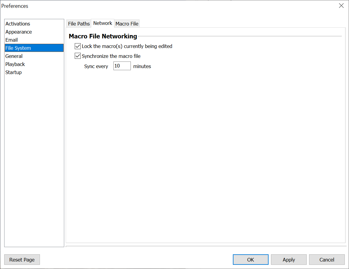 For example, if the interval is set to 5 minutes and another user makes a change to the same macro file currently open, then within 5 minutes the macro data will automatically be synchronized between the networked computers.