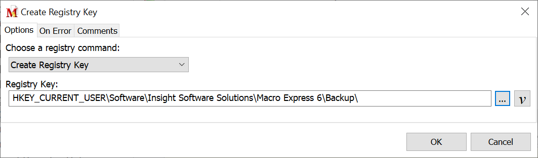 üNote: The Create Registry Key, Delete Registry Key, Write Registry Value and Delete Registry Value commands REQUIRE full Read/Write access to the registry in those areas that the user wishes to modify. The system administrator is responsible for assigning security permissions. Macro Express does not have the ability to modify Access Control Lists.