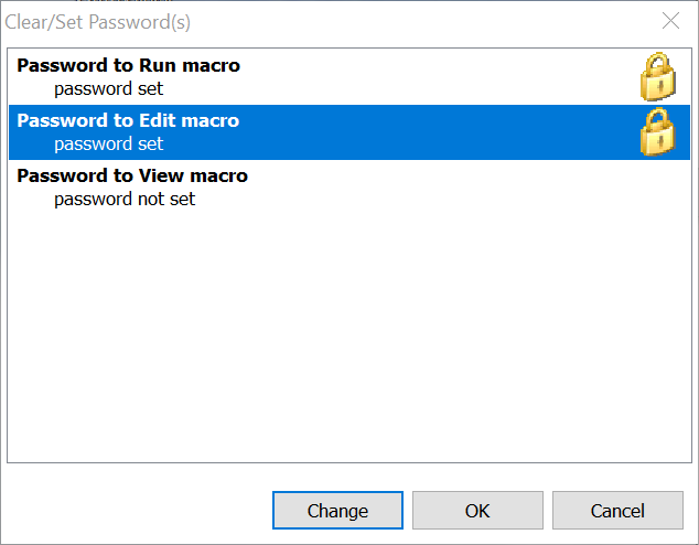 Macro Express Explorer > Category > Set/Clear Password(s)