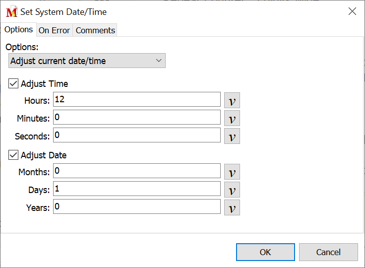 Use this option to set the system clock ahead by the number of hours, minutes or seconds specified. Or move it back by inserting a negative value in the field.